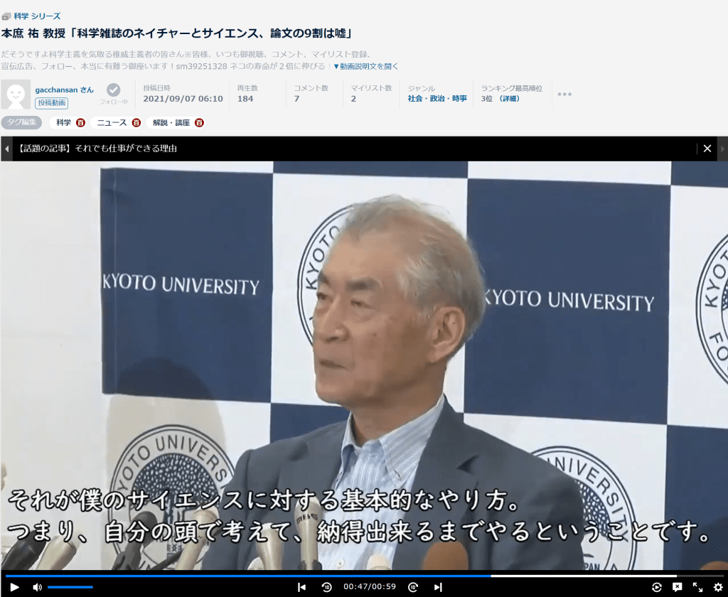 菅総理は、本庶教授を学術会議から、BANしました。