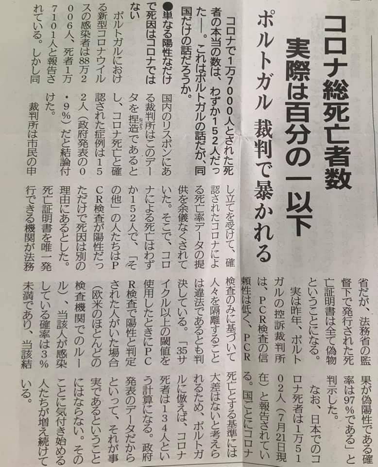 何に対して、PCR検査してたのでしょうか?USAは新型コロナとインフルエンザの区別ができないから、新しい検査法を採用。USAはPCR検査の不正確さを自白してしまいました。日本は、嘘がばれたので、余り物のPCR検査キットを地方にばら撒きました。知事は喜んでいます。どうしたものかと。